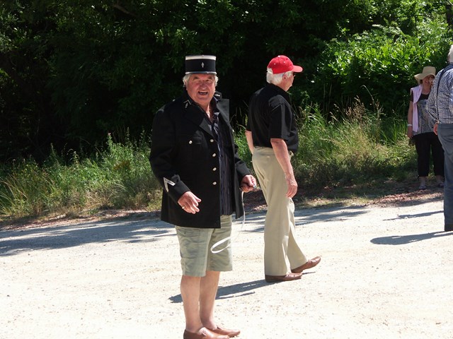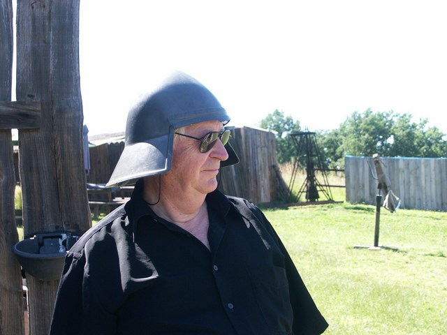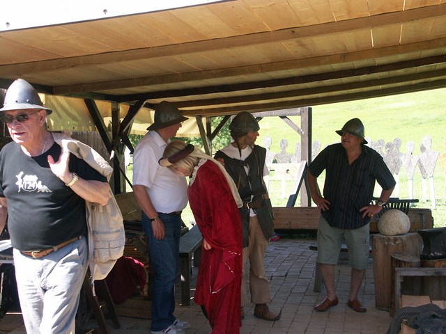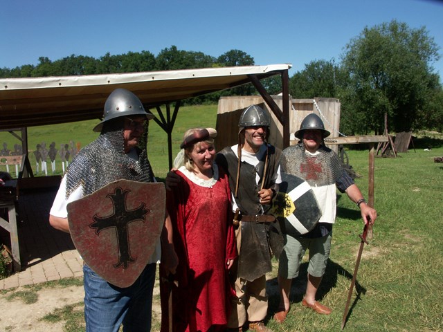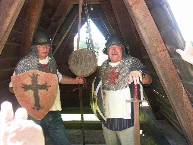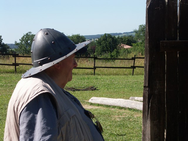 A 2 km, pour digérer, nous visitons le musée de Larresingle, un village du Moyen Âge, à quelques centaine de mètres, un personnage nous a initié au maniement des armes du Moyen Âge.