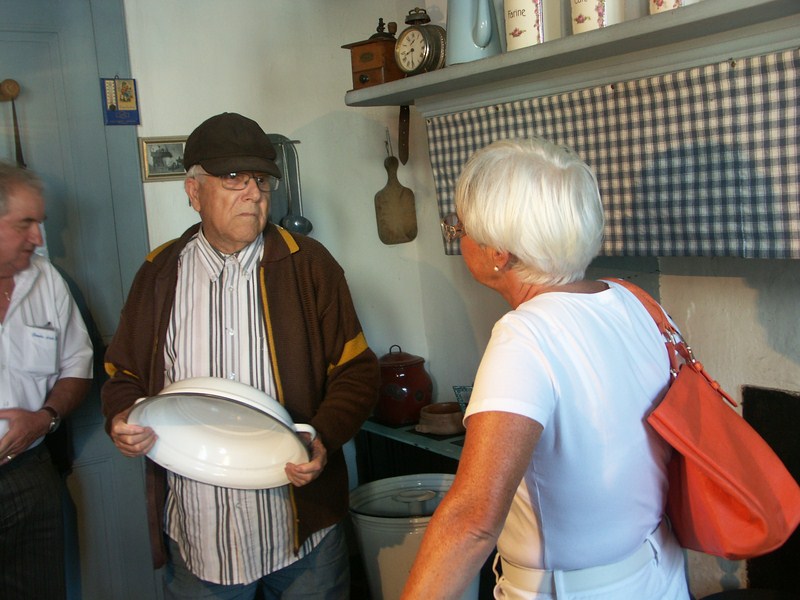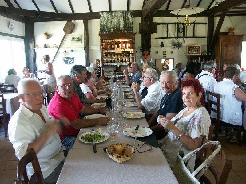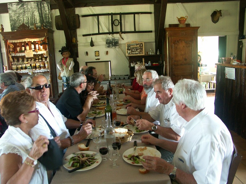 Nous sommes partis sous un soleil caché vers 9 h. Après quelques kilomètres sur de petites routes très calmes et assez ombragées , le soleil nous inonde de ses rayons puissants. Nous arrivons vers 10 h 30 à LALUQUE ,où nous sommes attendus et très bien accueillis, les plus rapides se sont garés sous les arbres !!! Puis nous partons pour la visite du musée des vielles choses !!!!!!! Surprise, dans le couloir, une magnifique photo de notre précédente visite quelque 6 ans en arrière et cela se voit. Après cette visite très instructive pour les plus jeunes qui n’ont pas connu cette époque, Christian et Hélène nous avaient concocté un super apéro. Puis nous voilà partis vers Castets toujours sur de petites routes très calmes, et, au milieu de nulle part, une magnifique ferme auberge. Là encore les plus rapides sont à l’ombre. Un copieux et délicieux repas nous attend, dommage pour les absents !!!!!!nous repartons vers 16 h pour nous rendre a st Geours de Maremne, je crois ( je n’avais pas encore dégusté le Pastis de l’Abbé BOYER) !!!!!, nous avons été initiés à la fabrication de ce délicieux breuvage avec plusieurs mélanges de plantes aromatiques ,très bonnes pour la santé !!!!!!!! Par une température de 32°, la dégustation fut la bienvenue. Puis après quelques achats, chacun regagne ses pénates, en remerciant encore Christian et Hélène pour cette belle journée.