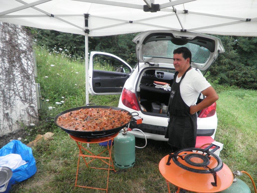 Nous sommes repartis à toute vitesse jusqu’au moulin à vent sans aile de Benesse où là une énorme paella mijotait sagement, Françis a ajusté son tablier de cuistot, pour cuire les aiguillettes de canard.