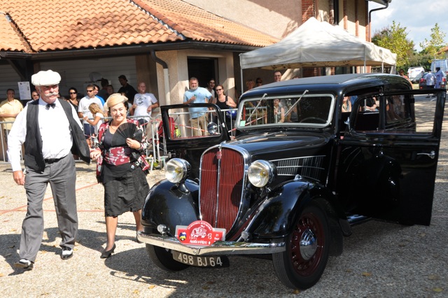La deuxième catégorie, composée des véhicules des années 30/40 a vu récompensés : la Fiat Salilla de 1937 de M. et Mme Dubois, le peugeot 402 Eclipse de Colette et Rafaël a beaucoup impressionné tant par se rareté du modèle que par son état, remportant également le prix spécial du jury et enfin le 1er prix a récompensé la Delage 1933 de Pierre Julien, équipage en tenue de golfeur, cette magnifique voiture a remporté également le prix de la ville d’Angresse.
