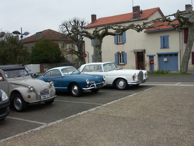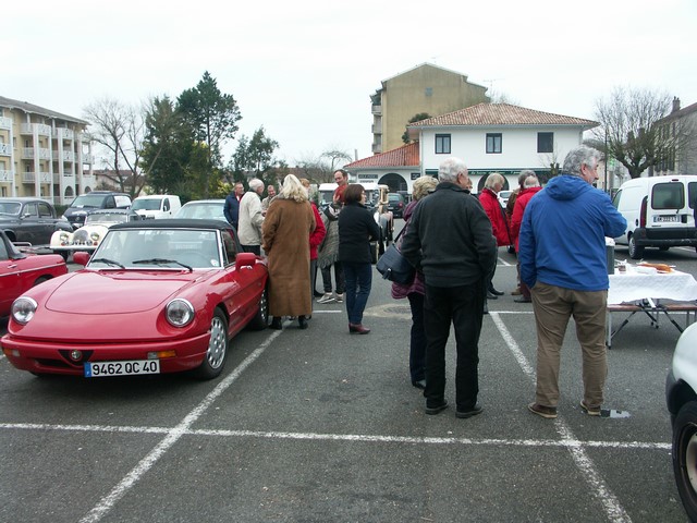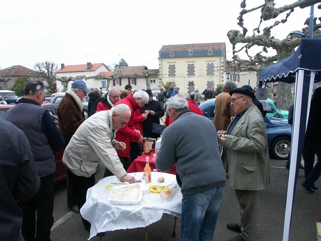 Au bout de deux heures à allure de Sénateur, surveillés par un "gendarme" qui nous protégeait aux carrefours, arrivés place de Grenade, nous avons été rejoints par une dixaine d’anciennes de clubs voisins et une moto deux roues motrices, pour prendre un petit déjeuner campagnard comme on les aime.