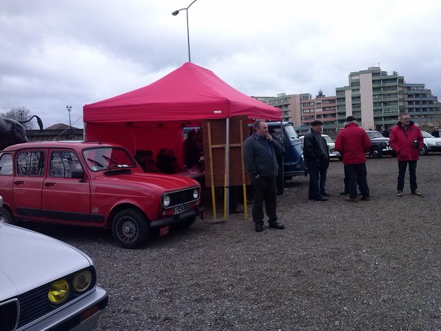 Malgré un temps très incertain, une vingtaine d’anciennes étaient présentes, leur propriétaire on pu apprécier le café de Christian à condition de s’accrocher au chapiteau qui, au grès des coups de vent, avaient tendance à s’envoler, pourtant l’estafette du club renforcée de la 4l de JF l’avaient amaré !